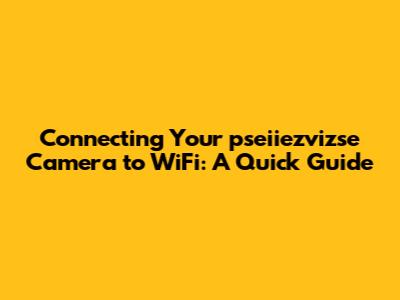 Step-by-Step Guide to Connecting Your pseiiezvizse Camera to WiFi