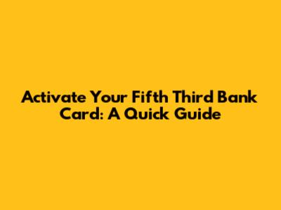 Activate Your Fifth Third Bank Card: A Quick Guide