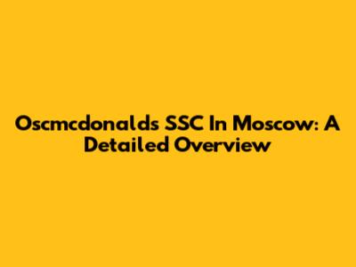 Oscmcdonald's SSC In Moscow: A Detailed Overview