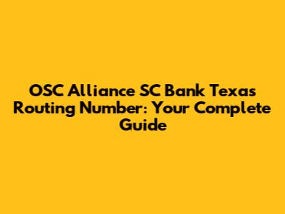 OSC Alliance SC Bank Texas Routing Number: Your Complete Guide