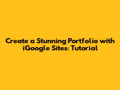 Creating a stunning portfolio is essential for showcasing your work and attracting new opportunities. While iGoogle Sites (classic Google Sites) was a simple and effective way to build a portfolio, there are now many modern alternatives that offer more features and flexibility. Whether you choose to use iGoogle Sites or another platform, the key is to plan your portfolio carefully, select your best work, and present it in a visually appealing and engaging way. By following the tips and guidelines in this tutorial, you can create a portfolio that will help you achieve your goals and advance your career.