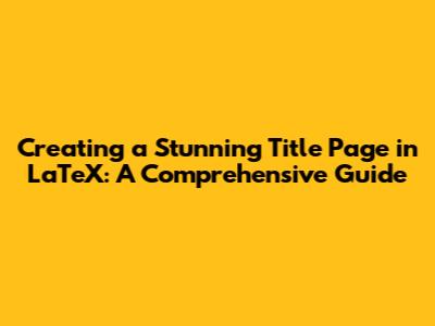 Hey everyone! Today, we're diving into something super useful for all you LaTeX users out there: how to make a title page in LaTeX. Whether you're working on a research paper, a thesis, or just a cool document, a well-designed title page is essential. It's the first thing people see, so it needs to look good and give all the important info. We'll walk through everything from the basics to some fancy customizations, so you can create title pages that really stand out. Let's get started, shall we?