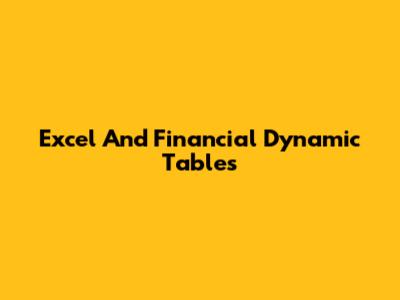 Excel And Financial Dynamic Tables