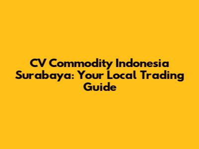 Hey there, future traders and business enthusiasts! Surabaya, a bustling port city in Indonesia, is a hotbed for commodity trading. If you're looking to dive into this exciting world, understanding the landscape of CV Commodity Indonesia Surabaya is your first step. We're talking about everything from agricultural products like coffee and spices to minerals and manufactured goods. This article is your friendly guide to navigating this dynamic market. We'll explore what makes Surabaya a key trading hub, the role of CVs (Commanditaire Vennootschap or Limited Partnerships) in this market, and how you can get started. Get ready to learn about the ins and outs, so you can confidently embark on your trading journey.