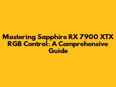 Mastering Sapphire RX 7900 XTX RGB Control: A Comprehensive Guide