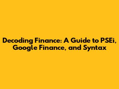 Hey finance enthusiasts! Ever feel like you're trying to crack a secret code when you're looking at the stock market? Don't worry, you're not alone! Navigating the world of finance, especially when dealing with platforms like the Philippine Stock Exchange Index (PSEi) and Google Finance, can sometimes feel like learning a whole new language. But fear not, because we're going to break it down for you. We'll be diving into the PSEi, exploring the magic of Google Finance, and getting you comfortable with the essential syntax you need to understand and analyze financial data. Let's get started!