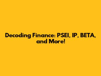 Hey guys! Ever felt lost in the world of finance? Jargon like PSEI, IP, BETA, SESEISSESE can sound like a foreign language, right? Well, buckle up! We're about to break it all down in a way that's easy to understand. No more head-scratching, I promise! Let's dive into each of these terms and see how they play a role in the financial landscape. Whether you're a newbie investor or just curious about how the market works, this guide is for you. Trust me, by the end of this, you'll be throwing around these terms like a pro! And remember, understanding these concepts is the first step towards making smarter financial decisions. It's all about empowering yourself with knowledge, so let’s get started and demystify the world of finance together!