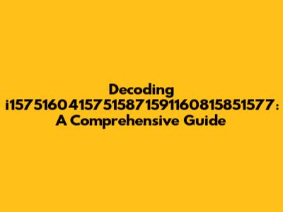Hey guys! Ever stumbled upon something that looks like complete gibberish but you just know it's important? Today, we're diving deep into one such enigma: i15751604157515871591160815851577. Now, I know what you're thinking – what is that even? Well, buckle up, because we're about to unravel this mystery together. This guide is designed to break down this seemingly random string of characters, explore its potential meanings, and give you the tools to understand similar codes you might encounter in the wild. Let's get started, shall we?