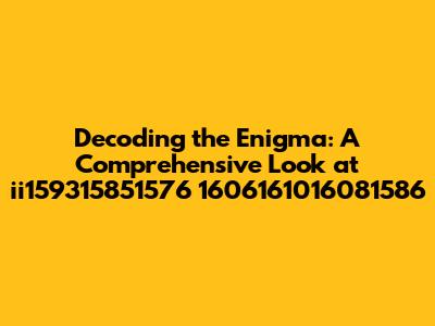 Hey guys! Ever stumbled upon a cryptic string of characters and wondered what secrets it held? Today, we're diving deep into the mysterious world of ii159315851576 1606161016081586. This alphanumeric sequence might seem like gibberish at first glance, but fear not! We're here to break it down, explore its potential meanings, and understand where it might come from. This is going to be a wild ride, so buckle up and get ready to decode! Let's embark on a journey to uncover what this string could possibly represent. It could be anything from a serial number to an encoded message, or even just a random sequence. The possibilities are endless, and that's what makes it so intriguing! We'll explore different scenarios and potential uses, providing you with a comprehensive understanding. Are you ready to become a decoding master? Let's dive in! This is all about understanding patterns and context. Think of it like solving a puzzle – each piece of information brings you closer to the complete picture. We'll start by analyzing the structure of the string, looking for any recognizable patterns or sequences. Then, we'll consider the potential sources of the string, such as databases, software applications, or even hardware devices. Finally, we'll explore different decoding techniques and tools that can help us unlock the secrets hidden within ii159315851576 1606161016081586. So, get your thinking caps on, and let's get started!