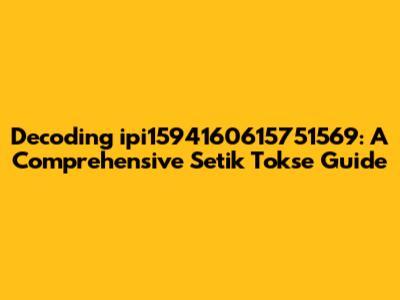 Hey guys! Ever stumbled upon something that looks like a jumbled mess of characters and wondered what in the world it means? Today, we're diving deep into the mysterious world of "ipi1594160615751569 setik tokse." Sounds like a secret code, right? Well, buckle up, because we're about to crack it open! This guide is designed to help you understand what this string might represent, how to interpret it, and why you might be seeing it. We’ll break it down piece by piece, ensuring that by the end, you'll be practically fluent in "ipi1594160615751569 setik tokse." Let's get started and unravel this enigma together!