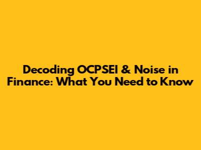 Hey guys! Ever felt like the stock market is just random? Like there's some secret sauce, or maybe it's just, well, noise? Today, we're diving deep into two concepts that can help you make sense of the chaos: OCPSEI and noise in finance. Buckle up, because we're about to break down some complex stuff in a way that's actually easy to understand. You know, finance can sound intimidating, but let's make it chill, real chill. Grasping these elements is super important for anyone looking to make smarter investment decisions. It's about cutting through the clutter and understanding what's really driving those market moves. Are you ready? Let's get started and demystify these key financial concepts together! Think of OCPSEI as a framework for understanding how markets should behave, stripping away all the emotional and irrational elements. And noise? That's all the stuff that messes with that ideal scenario, the rumors, the hype, the knee-jerk reactions. When you understand both, you're better equipped to see the market for what it really is.