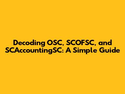 Hey guys! Ever stumbled upon terms like OSC, SCOFSC, or SCAccountingSC and felt like you were trying to decipher an alien language? Don't worry; you're not alone! These abbreviations might sound intimidating, but they represent essential concepts, especially if you're dealing with financial or accounting systems. In this article, we'll break down each term, explain what they mean, and show you why they matter. So, buckle up and get ready to demystify these acronyms! Understanding these terms can significantly enhance your grasp of organizational finances and operational procedures. Accurate interpretation of these acronyms is crucial for professionals and students alike, ensuring that financial data is correctly understood and utilized. From managing budgets to ensuring compliance, OSC, SCOFSC, and SCAccountingSC play vital roles in the financial ecosystem. Let's dive in and make sense of it all!