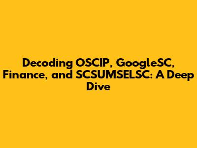 Hey there, finance enthusiasts and tech aficionados! Ever stumbled upon acronyms that seem to be a secret code? Well, today, we're going to crack the code on OSCIP, GoogleSC, Finance, and SCSUMSELSC. These terms may sound like alphabet soup, but they represent important aspects of the financial and technological landscapes. We'll be breaking down each term, exploring its significance, and understanding how they intertwine. So, grab your favorite beverage, sit back, and let's dive into the fascinating world of finance and tech!