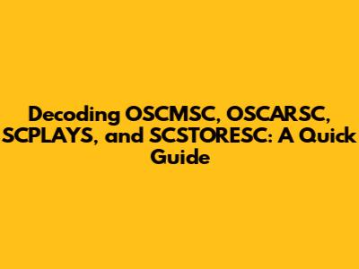 Hey guys! Ever stumbled upon acronyms like OSCMSC, OSCARSC, SCPLAYS, and SCSTORESC and felt a bit lost? Don't worry; you're not alone! These abbreviations pop up in various contexts, and understanding what they mean can be super helpful. Let's break them down in a simple, easy-to-understand way. This guide will provide you with a clear understanding of what each of these acronyms represents, offering insights into their respective domains and practical applications. Whether you're a student, a professional, or just a curious individual, this breakdown will equip you with the knowledge to navigate discussions and online content where these terms are used. By the end of this article, you'll be able to confidently decipher these acronyms and understand their significance in their respective fields. We will explore the nuances of each term, providing examples and context to ensure clarity. So, let's dive in and unravel the meanings behind OSCMSC, OSCARSC, SCPLAYS, and SCSTORESC, making your understanding crystal clear and enhancing your overall knowledge base. This comprehensive guide is designed to be your go-to resource for understanding these acronyms, ensuring you're never left scratching your head again.