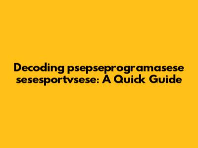 If you really need to crack the code of 'psepseprogramasese sesesportvsese,' here's a game plan: