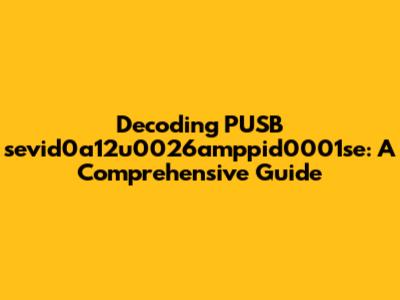 Hey there, tech enthusiasts! Ever stumbled upon the cryptic "pusb sevid0a12u0026amppid0001se" string and wondered what in the world it means? You're not alone! This seemingly random collection of characters is actually a key identifier, and understanding it can be super helpful, especially if you're into troubleshooting or just curious about how things work under the hood. In this guide, we'll break down pusb sevid0a12u0026amppid0001se, explore its purpose, and provide some practical insights. So, grab your favorite beverage, get comfy, and let's dive into the fascinating world of device identifiers!