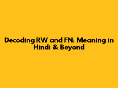 In the Hindi language, the specific meaning of RW and FN can vary. However, the Hindi translation may not be necessary if the meaning of the abbreviations is clear, and the context will help to understand the exact meaning of the terms. Let's delve into some common scenarios.