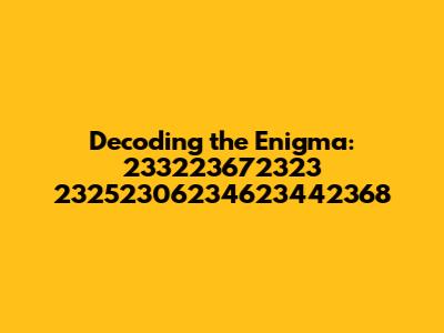 Okay, first things first, let’s break down this massive number: 233223672323 23252306234623442368. Seriously, just reading it aloud is a mouthful! When faced with a number like this, the initial reaction might be, "What on earth could this be?" But don't worry, we’re going to approach this methodically. One way to make sense of it is to consider it in segments. Perhaps it's a concatenated series of smaller, more meaningful numbers. For instance, maybe "2332" has a specific meaning in one context, while "2367" signifies something else entirely. It's like decoding a secret message where each number group is a word.