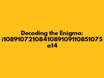 Alright, guys, let's dive into something that looks like a secret code straight out of a spy movie: i1089107210841089109110851075 a14. At first glance, it might seem like a random string of numbers and letters, but trust me, there's always a story behind these things. Whether it's a serial number, an identifier, or even a cleverly disguised message, our mission is to break it down and figure out what it means. So, grab your detective hats, and let's get started!