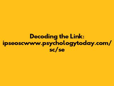 Now, let's focus on our specific link: ipseoscwww.psychologytoday.com/sc/se. We already know that "www.psychologytoday.com" is the domain name, indicating that the link leads to the Psychology Today website. Psychology Today is a well-known and respected source of information on psychology, mental health, and relationships. It publishes articles written by psychologists, therapists, and other experts in the field, covering a wide range of topics. The "/sc/se" part of the link is the path, which specifies the location of the specific resource on the website. In this case, "/sc/se" likely refers to a specific section or category within Psychology Today. Without further context, it's difficult to say exactly what "sc" and "se" stand for. However, based on the content of Psychology Today, we can make some educated guesses. It's possible that "sc" refers to a specific subject category, such as "self-care" or "social cognition". The "se" part could then refer to a subcategory or a specific article within that category. To find out for sure, we would need to visit the link and explore the content it leads to. But even without knowing the exact meaning of "sc" and "se", we can still infer that the link likely leads to a specific resource related to psychology or mental health on the Psychology Today website. Isn't it fascinating how much information can be gleaned from a simple string of characters?