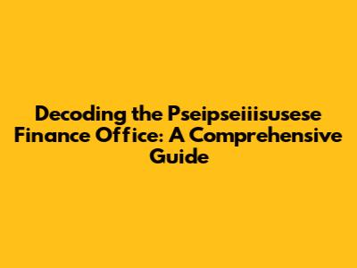 Hey guys! Ever heard of the Pseipseiiisusese Finance Office? Maybe you're scratching your head, wondering what exactly it is. Well, you're in the right place! We're diving deep into everything you need to know about this intriguing entity. In this comprehensive guide, we'll break down the Pseipseiiisusese Finance Office, exploring its functions, significance, and what makes it tick. Get ready to have all your burning questions answered, from the basics to the nitty-gritty details. Let's get started!