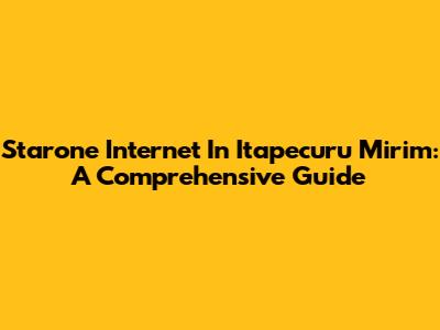 Starone Internet In Itapecuru Mirim: A Comprehensive Guide