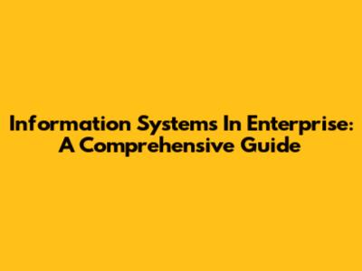 Information Systems In Enterprise: A Comprehensive Guide