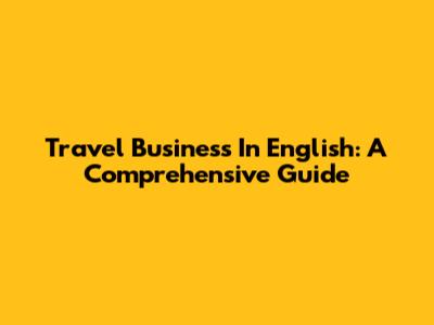 Travel Business In English: A Comprehensive Guide