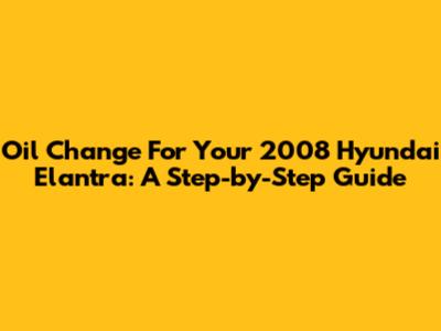 Oil Change For Your 2008 Hyundai Elantra: A Step-by-Step Guide