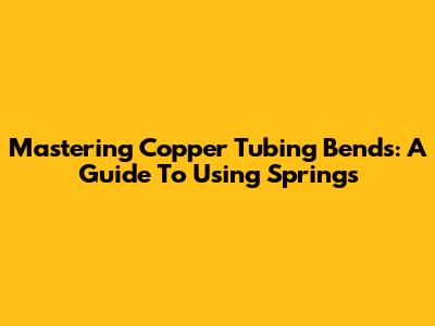 Mastering Copper Tubing Bends: A Guide To Using Springs