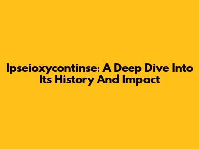 Ipseioxycontinse: A Deep Dive Into Its History And Impact