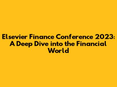 Hey everyone, let's dive into the Elsevier Finance Conference 2023! This conference was a real powerhouse of financial insights, bringing together some of the brightest minds in the industry. It was a whirlwind of discussions, presentations, and networking opportunities, all focused on the latest trends and challenges shaping the world of finance. I'm here to give you the lowdown on the most important takeaways, the key themes that emerged, and what it all means for you. So, buckle up, because we're about to explore the financial landscape of 2023 and beyond!