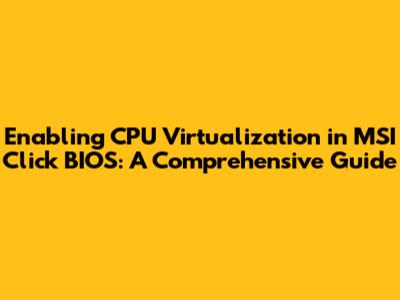 Hey everyone! Today, we're diving deep into how to enable CPU virtualization in MSI Click BIOS. If you're looking to boost your system's performance, run virtual machines smoothly, or get the most out of your applications, enabling virtualization is a crucial step. So, let's get started and make sure you're all set to go!