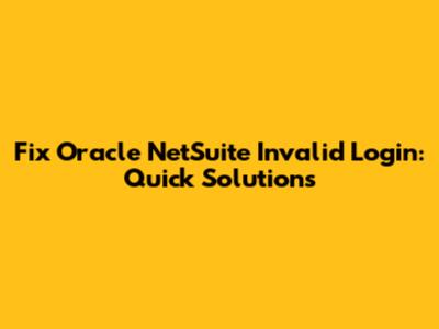 Fix Oracle NetSuite Invalid Login: Quick Solutions