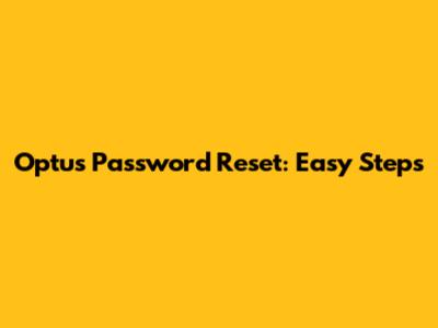 Optus Password Reset: Easy Steps