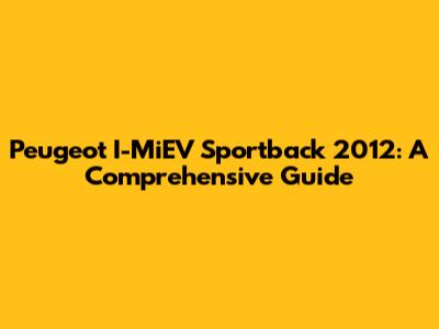 Peugeot I-MiEV Sportback 2012: A Comprehensive Guide
