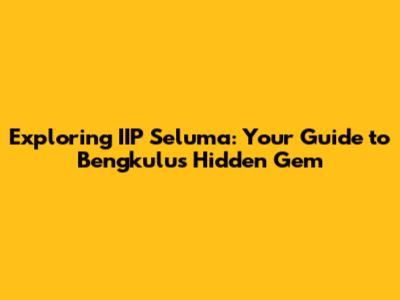 Hey guys! Ever heard of IIP Seluma in Bengkulu? If not, you're in for a treat! This area is a real hidden gem, and I'm super excited to give you the lowdown on everything it has to offer. We're going to dive deep into what makes IIP Seluma so special, from its stunning natural beauty to its unique cultural experiences. So, buckle up and get ready to explore! Our main focus is to help you understand why IIP Seluma should be on your travel radar and how you can make the most of your visit. Whether you're a seasoned traveler or someone just starting to explore, this guide will give you all the essential info you need.