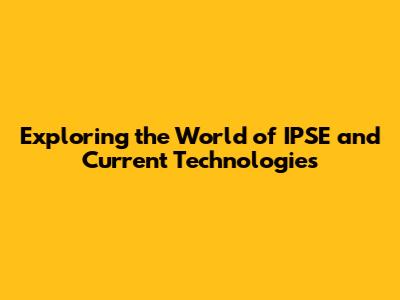 Current Technologies Powering IPSE