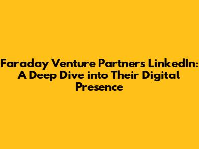 Hey everyone, let's dive into the digital realm and explore Faraday Venture Partners LinkedIn! This post will be your ultimate guide to understanding how Faraday Venture Partners leverage LinkedIn. We'll examine their activity, the team, and what insights you can glean from their online presence. So, if you're curious about this venture capital firm and how they use LinkedIn to connect and engage, then keep reading. We'll be covering a lot of ground, so buckle up!