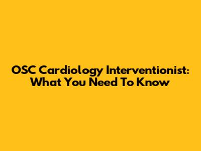 OSC Cardiology Interventionist: What You Need To Know