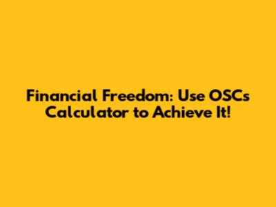 Why Use the OSC Financial Freedom Calculator?