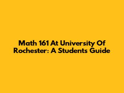 Math 161 At University Of Rochester: A Student's Guide