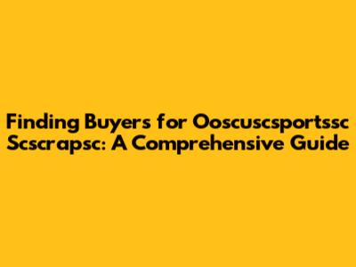 Finding the right buyers for your Ooscuscsportssc scscrapsc can be a daunting task, but with the right strategies and a bit of effort, you can connect with individuals or organizations eager to acquire these items. Whether you're a collector looking to downsize, a business liquidating assets, or simply looking to sell some items, understanding the market, knowing where to look, and effectively presenting your offerings are crucial. In this guide, we will walk you through the steps to identify, reach, and successfully engage potential buyers for your Ooscuscsportssc scscrapsc. From online marketplaces to specialized auctions, and from direct outreach to leveraging networks, we'll cover a range of methods to help you achieve a successful sale. Remember, the key to a successful transaction lies in preparation, presentation, and persistence. With the right approach, you can transform your Ooscuscsportssc scscrapsc into cash.