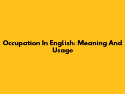 Occupation In English: Meaning And Usage