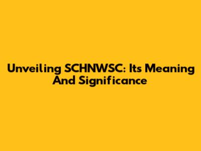 Unveiling SCHNWSC: Its Meaning And Significance
