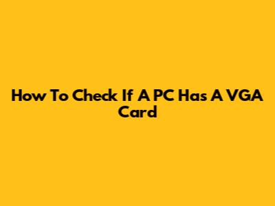 How To Check If A PC Has A VGA Card