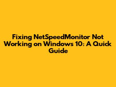 Understanding the NetSpeedMonitor Problem on Windows 10