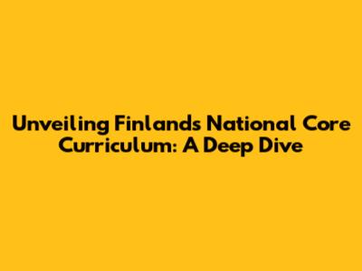 Unveiling Finland's National Core Curriculum: A Deep Dive