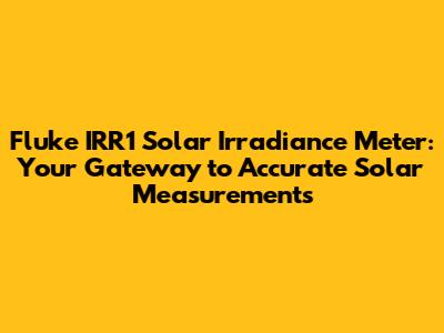 Unveiling the Fluke IRR1 Solar Irradiance Meter
