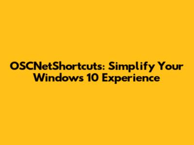 OSCNetShortcuts: Simplify Your Windows 10 Experience